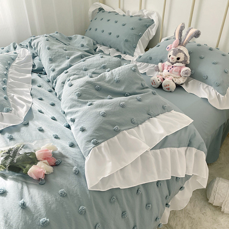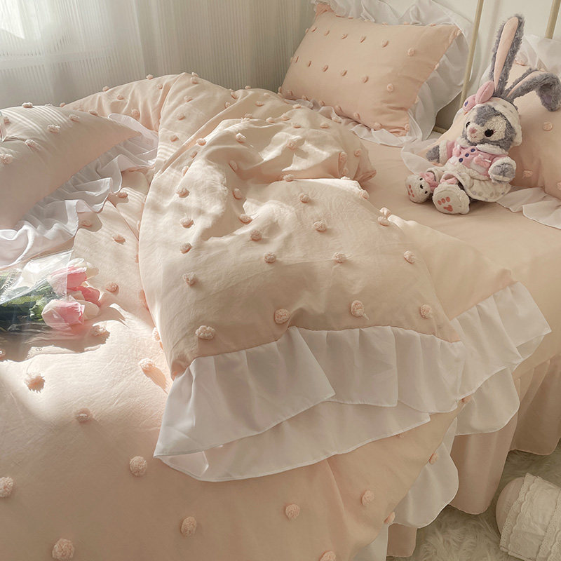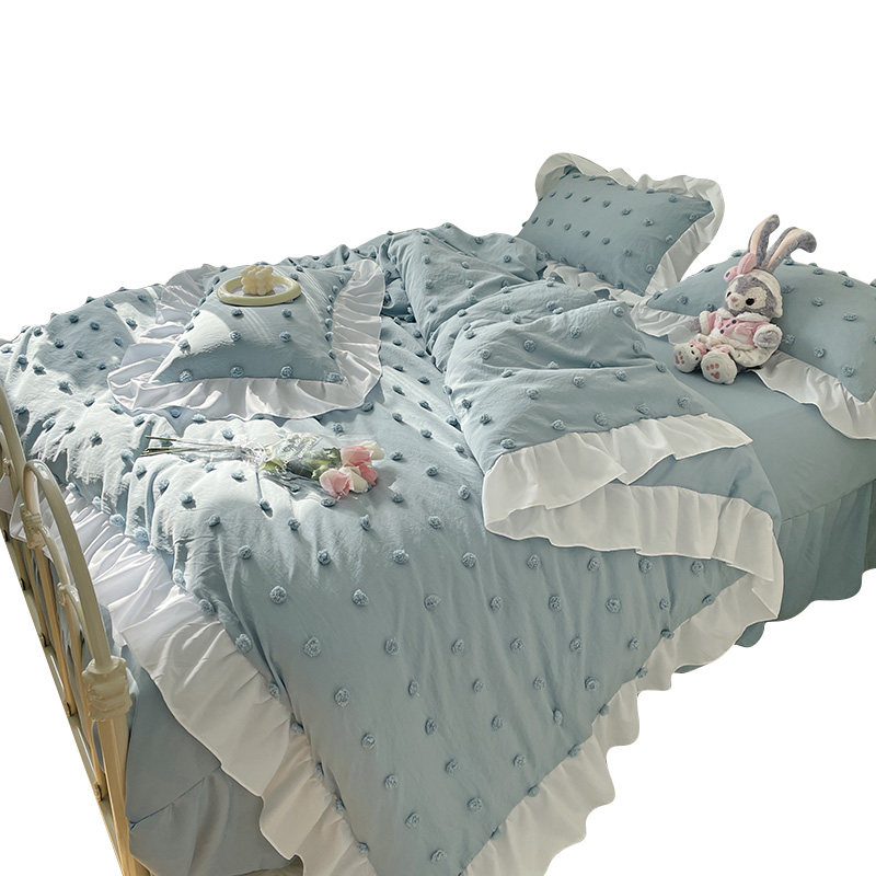 In the small fairy bed skirt four pieces of pure cotton cotton lace-all cotton princess wind naked sleeping girl's heart bed pure color