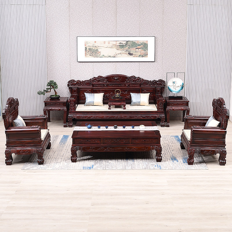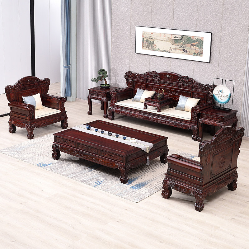 National standard mahogany furniture living room full set of ninety-five supreme Indonesian black rosewood large mahogany sofa Chinese style furniture