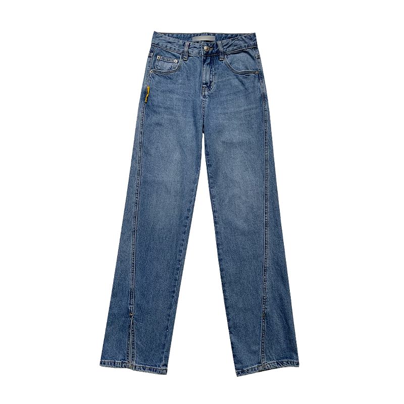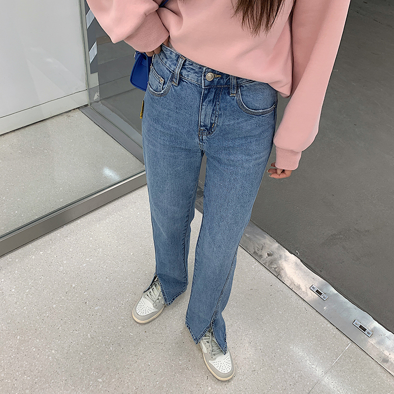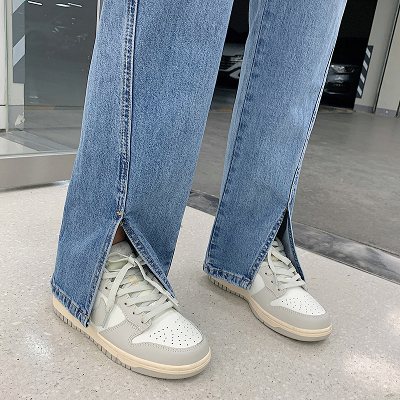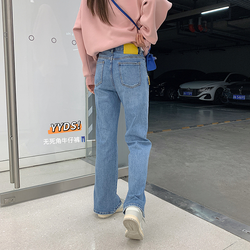 Light Color Open Fork Jeans Woman 2022 New Spring Autumn High Waist Straight Cylinder Pants Loose and Lean Towering Broadlegged Pants
