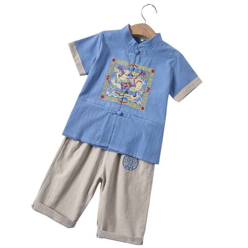 Children's Hanfu boys summer 2022 new suit Chinese style two-piece retro ancient costume Chinese school uniform performance clothing
