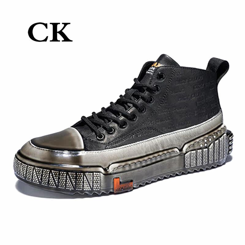 CK Fashion High Cylinder Board Shoes Genuine Leather Thick Bottom Men's Shoes 100 Hitch Comfort Casual Shoes Men's Dane Hong Kong
