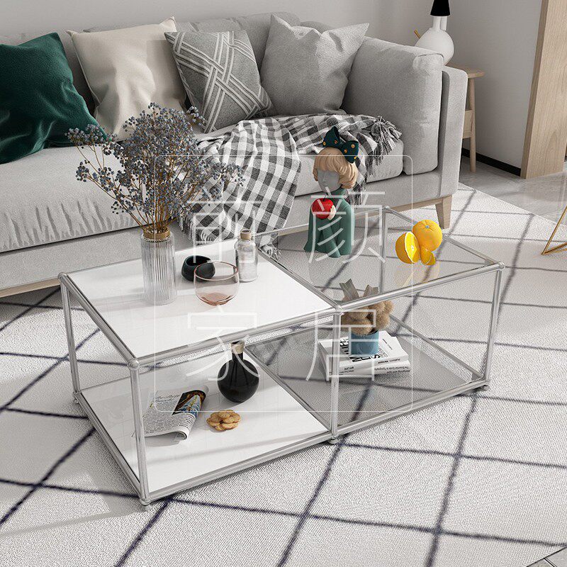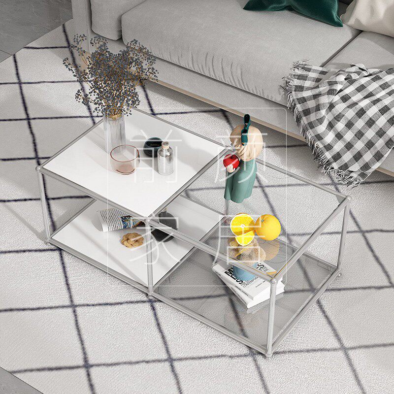 Medieval ins style stainless steel multifunctional coffee table small apartment living room modern minimalist glass rectangular table usm