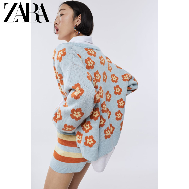 ZARA spring new women's dress flower pattern jacquard retro gentle knit jacket 4331046050