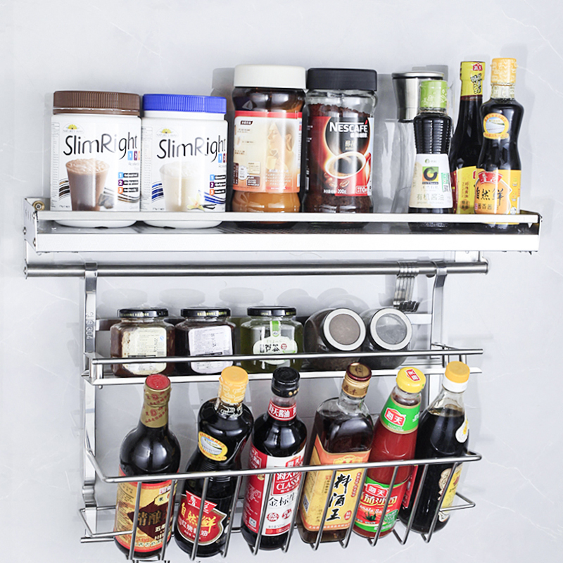 Kitchen seasoning bottle kitchen knife storage rack shelf 304 stainless steel wall-mounted wall-mounted rod rack