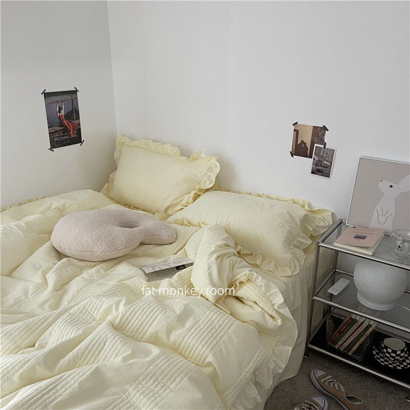 Five-Day Story|ins Japanese-style pure cotton washed cotton quilted quilted four-season bedding set of four-piece dormitory three-piece set