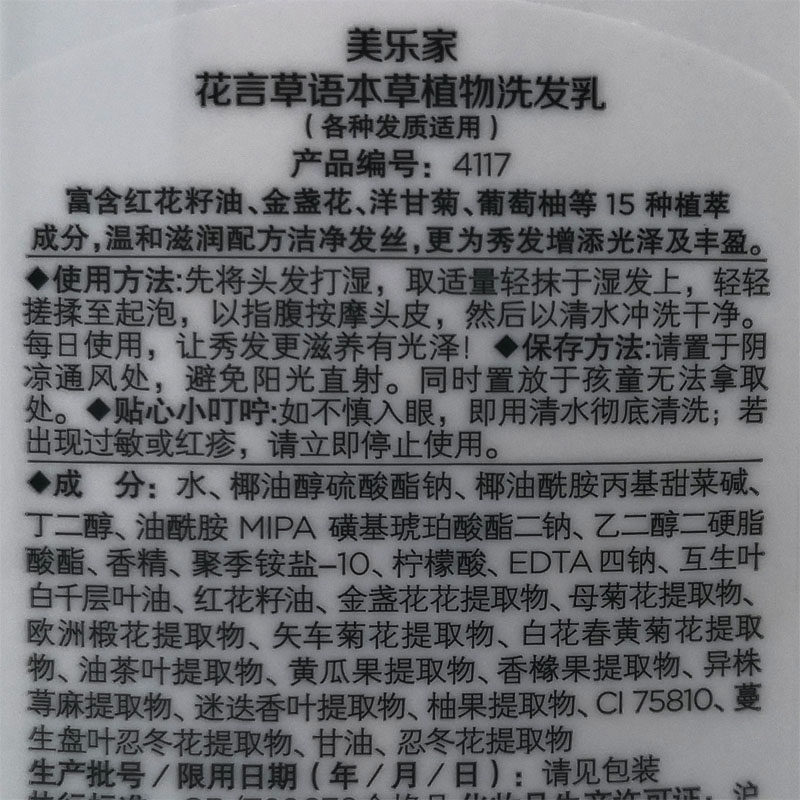 Beauty LeHome Flowers Rhetoric Herbage Herbage Plant Shampoo Milk Product Number 4117 Control Oil Specifications 237 ml