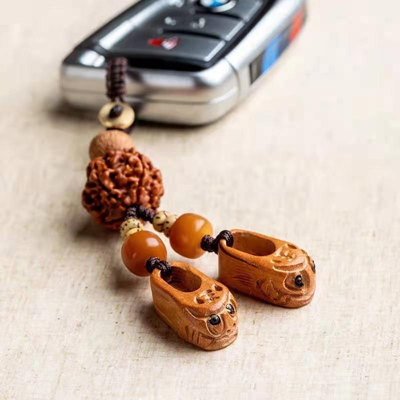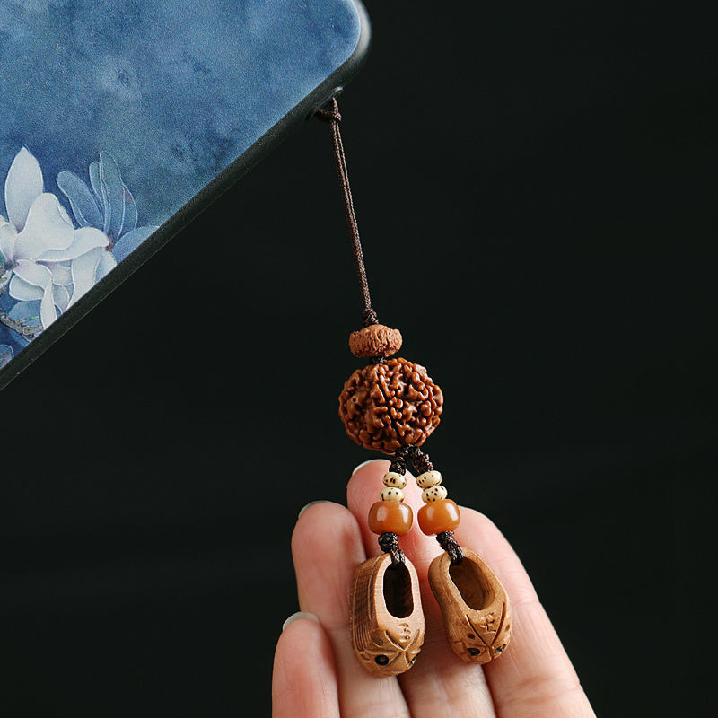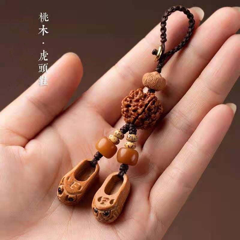 Ju Cool Peach Wood Tiger Head Shoe phone Pendant Accessories mobile phone Hanging Pendant with Ping An Pendant Car Key Clasp Pendant with Tiger Year Ornament National Tide Creativity Gift of the State Wind Hand Gift Men and Men