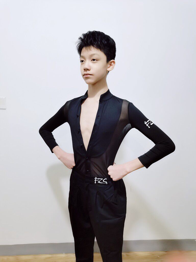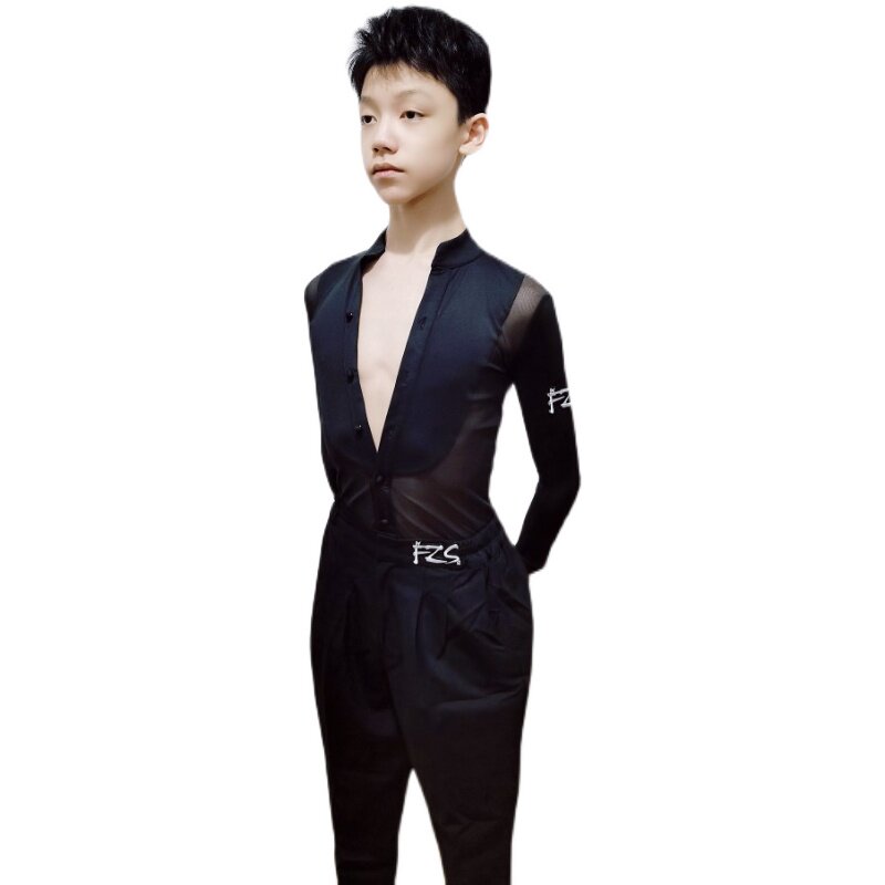 FZS Latin dance nine-point sleeve practice clothes boys dance practice clothing spring couplets crotch top Latin
