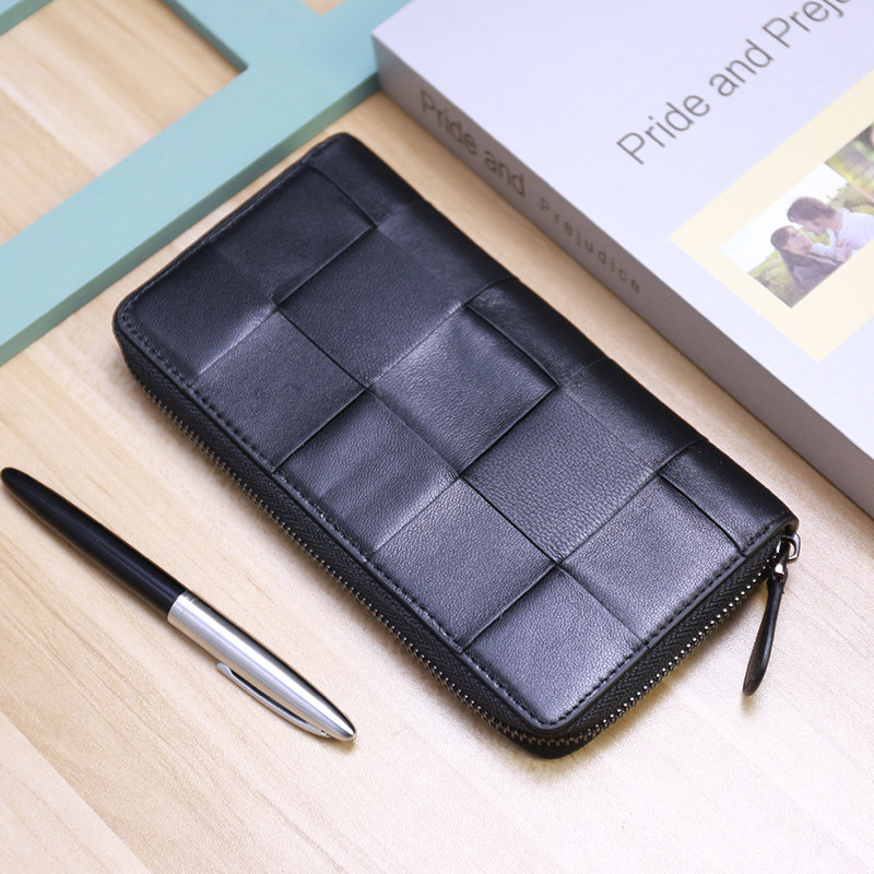 2022 new large-capacity men's youth long version wallet sheepskin hand-woven mobile phone bag leather clutch tide
