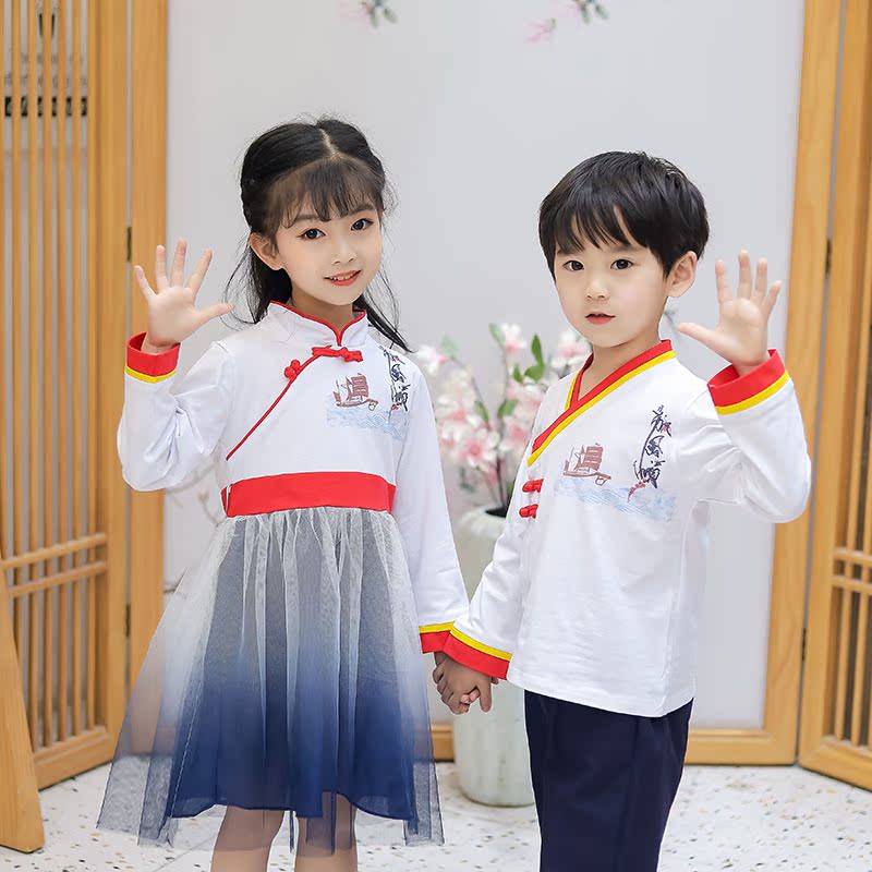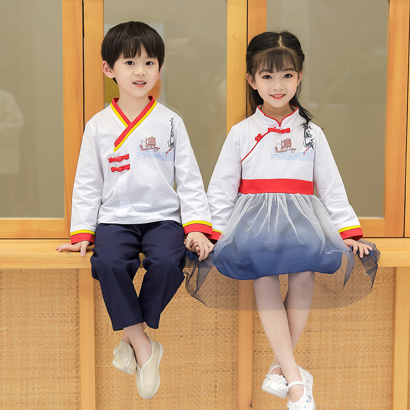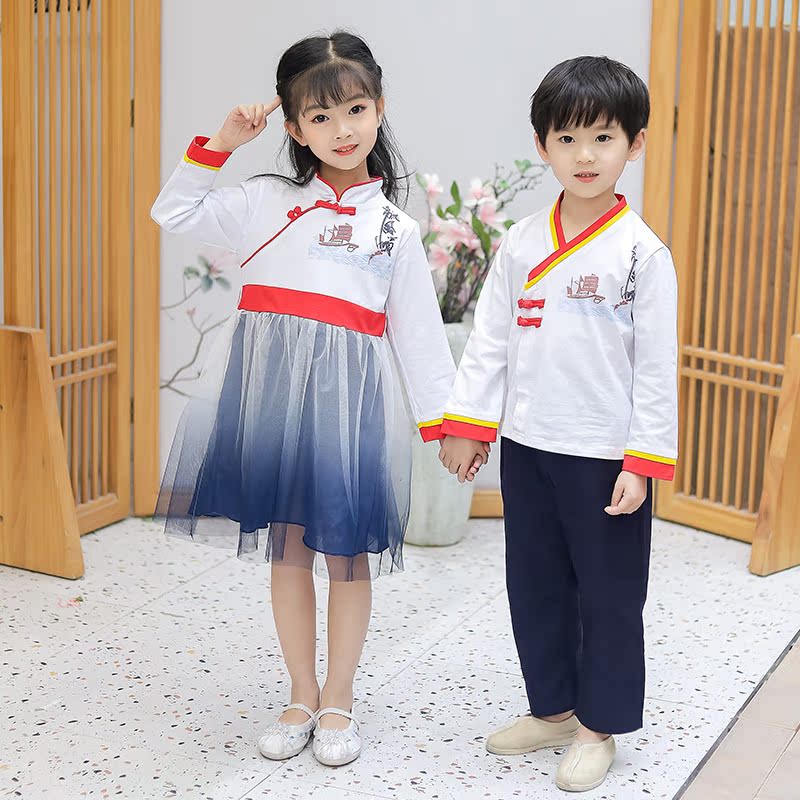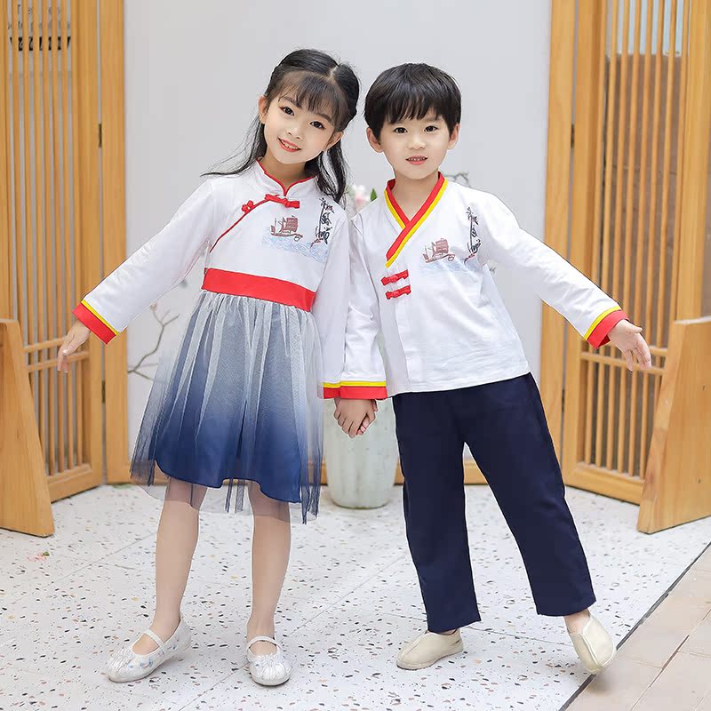 Children's Tangui Boy Chinese Fashion Culture Kids Costume Girls Ancient Han Dress Spring and Autumn School Performance Suss