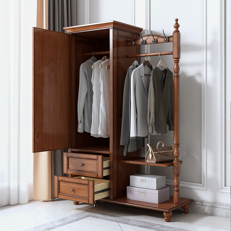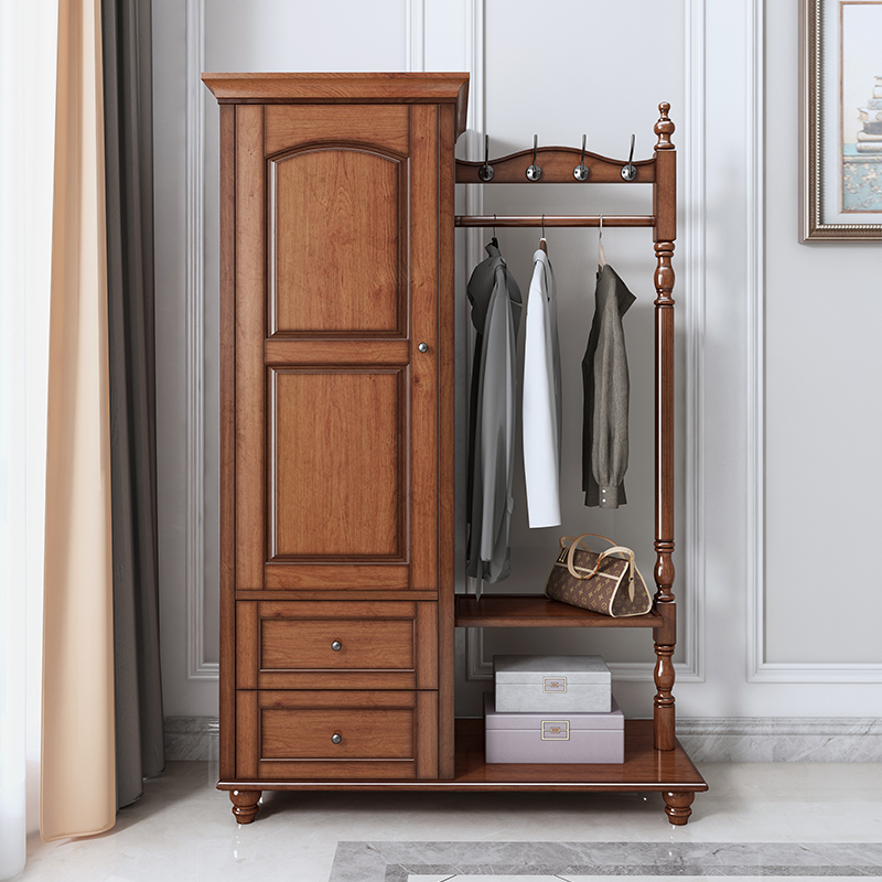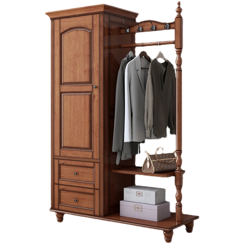 American light and luxurious solid wood clothes hat rack floor bucket hanging clothes hanger with cabinet home multifunctional containing cabinet clothes rack