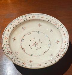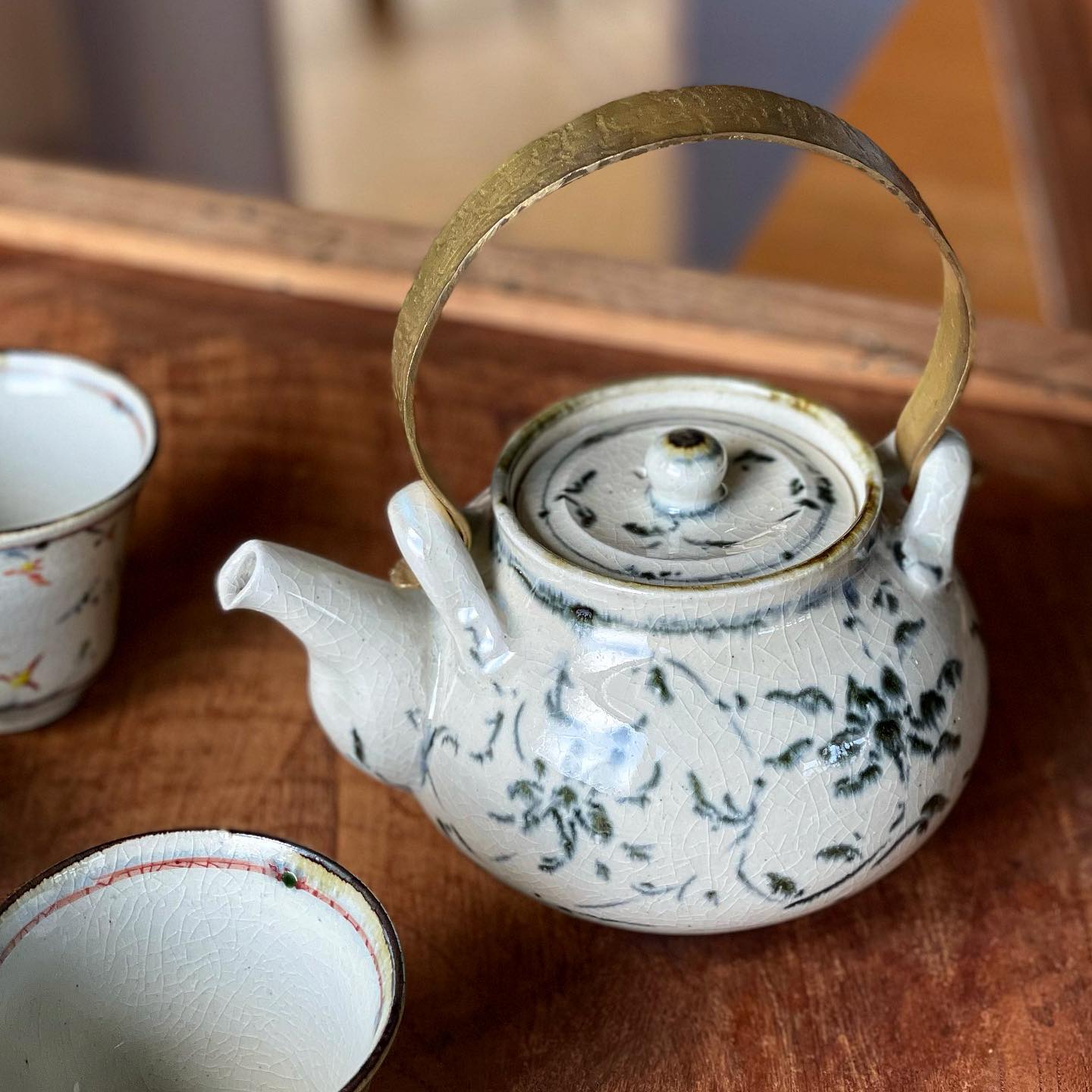 Japanese writer Fujita's Dye Paid Handpainted Green Flowers Red Annan Coffee Cup Teapot Dinner Plate ROUND DISC EXHIBITION BOUGHT