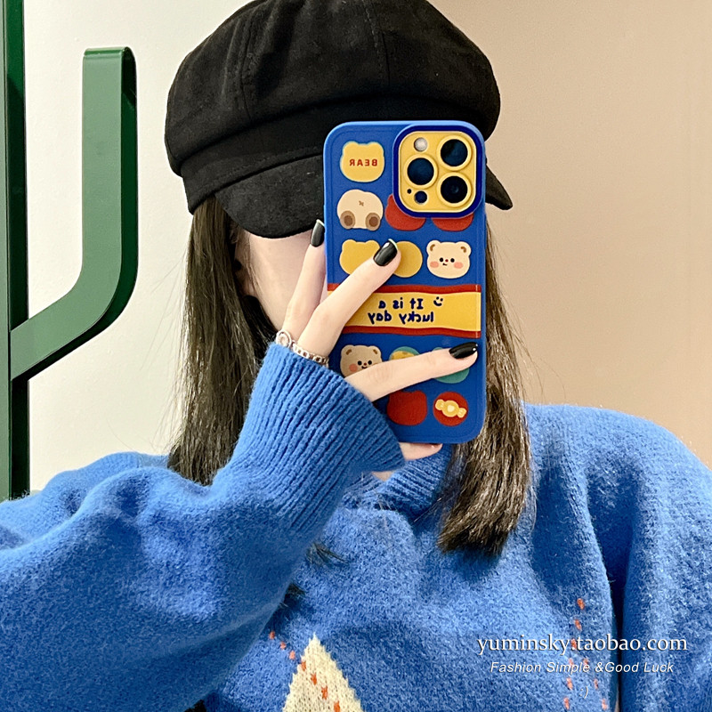 Klein Blue Cubs apply iPhone12 13promax Apple 11 mobile phone protection shell xs cartoon xr cute 8 women