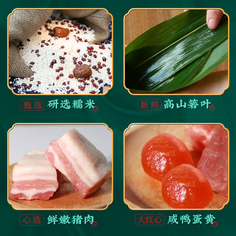 Fresh meat dumplings (8 gr fresh meat) * 140g * 6 bean sand dumplings (red robe fine sand) 140g * 6 only red bean honey date rice dumplings (1 honey date) 140g * 6 egg yolk fresh meat dumplings (half an egg