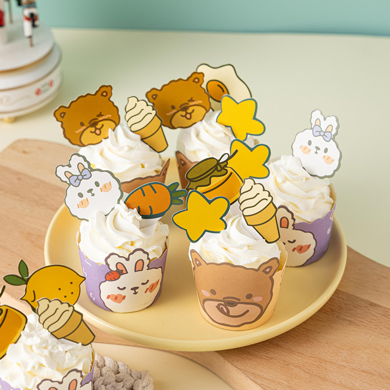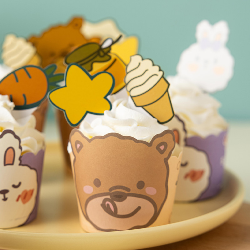 Paper cup (small bear) 50 cupcakes (small rabbit) 50 cupcakes (rabbit giraffes) 50 cupcakes (flower series) 75 cupcakes (lion elephant raccoons) 75