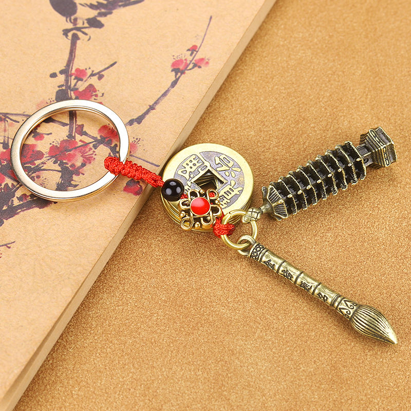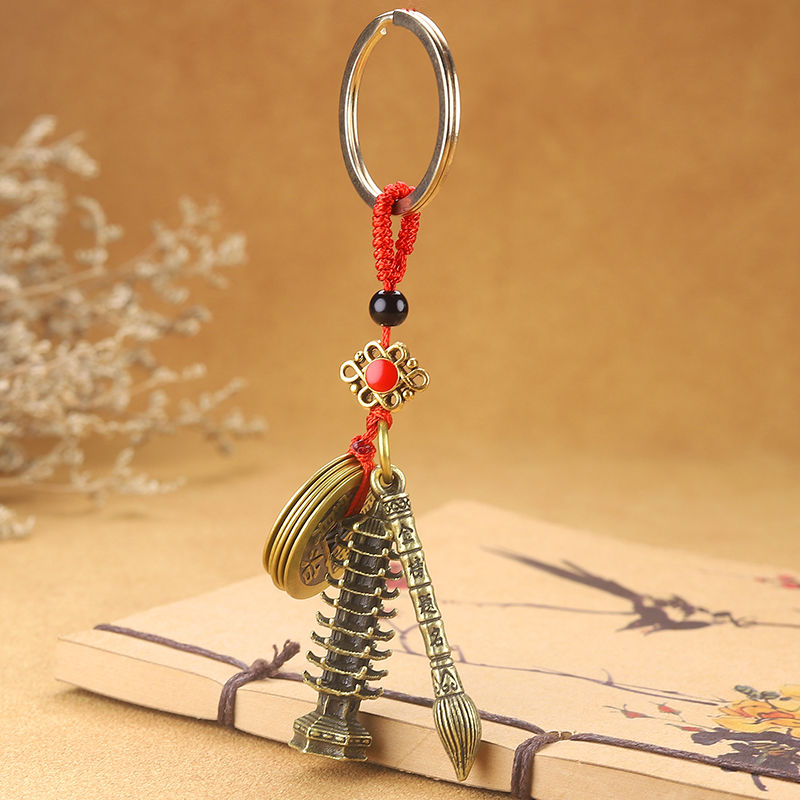 (Recommended by the teacher) Wenchang Pagoda Pen Pendant Car Keychain Pendant Accessories Five Emperors Small Pendant JS (March 1