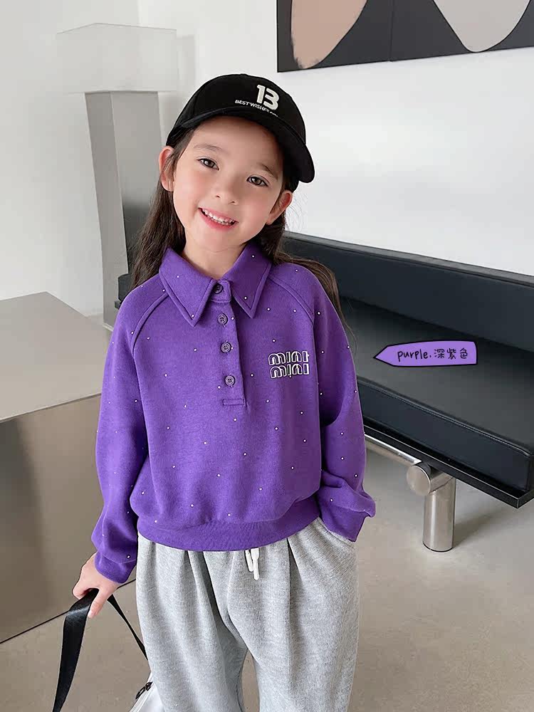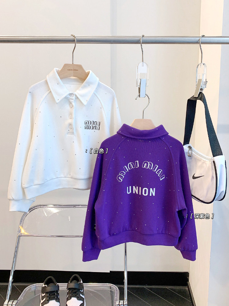 Chen Chenma 2022 Spring new girl casual pure color shirt collar blouses with bronzed and printed thick cotton T long sleeves