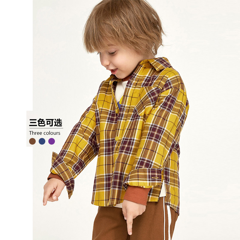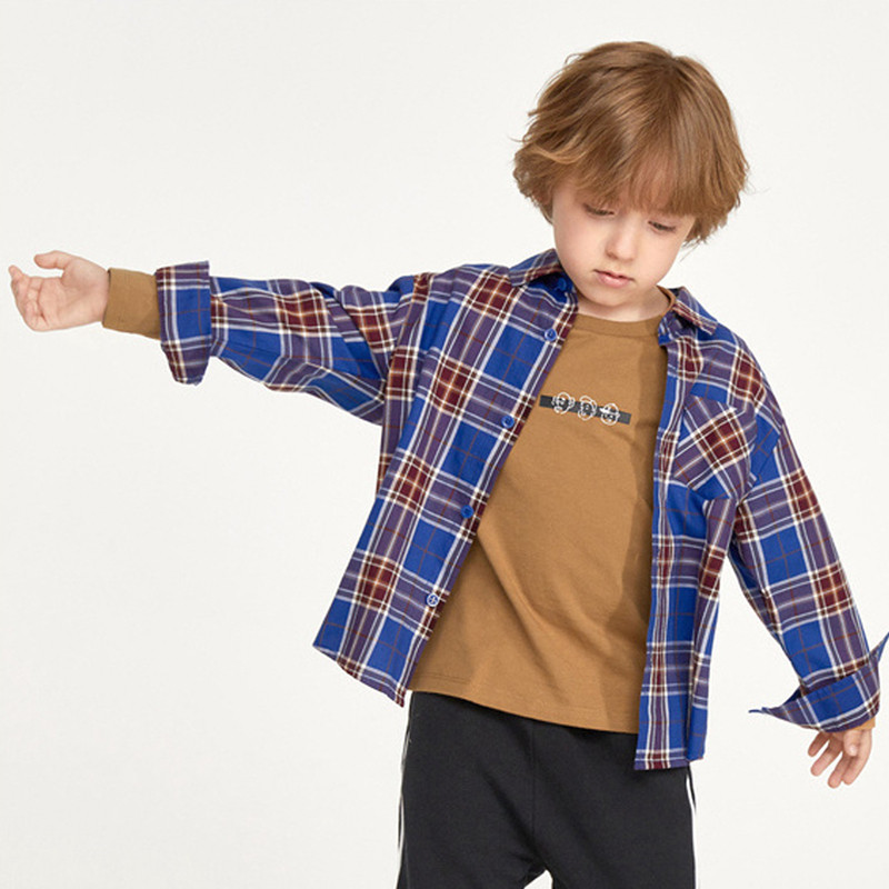 Boy long sleeve shirt pure cotton spring autumn clothing children casual plaid shirt small and medium baby blouses jacket foreign wave