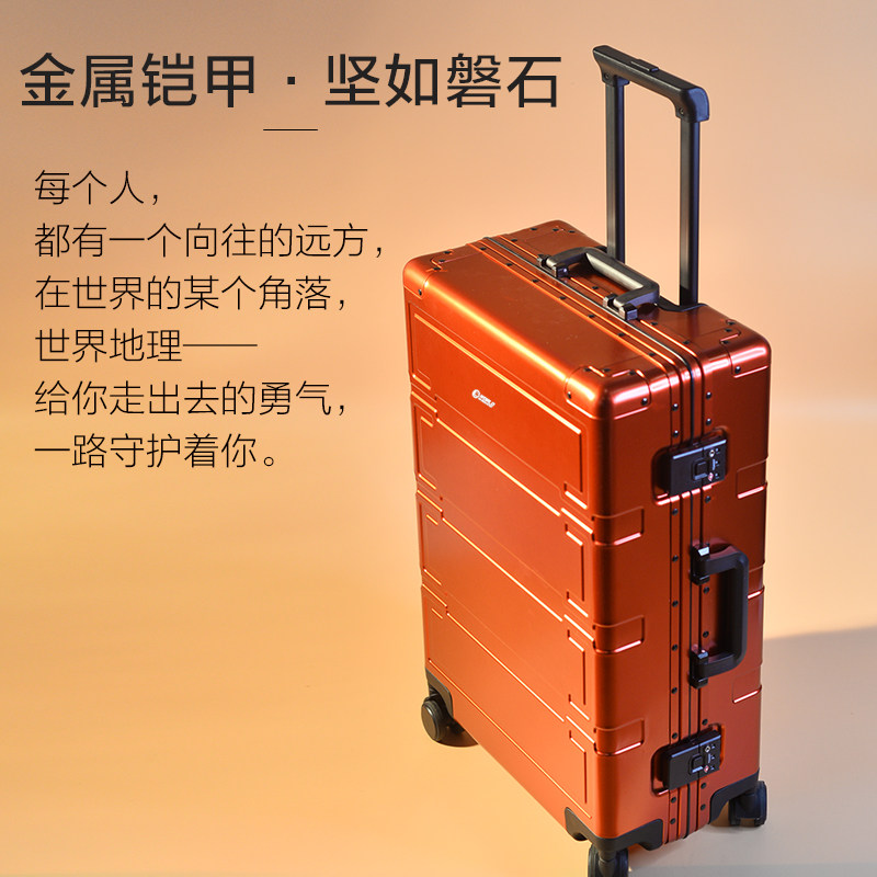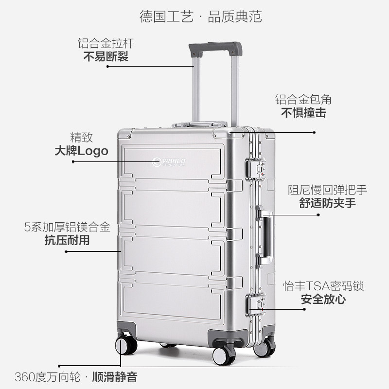 German World Geography All-aluminum-magnesium alloy trolley case universal wheel luggage male and female password boarding travel box