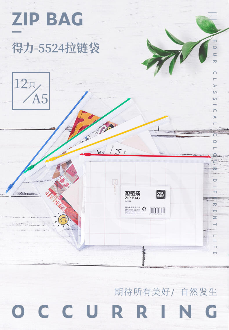 Firm 5524 zipper bag semi - transparent A5 waterproof zipper bag office financial bill collected student documents