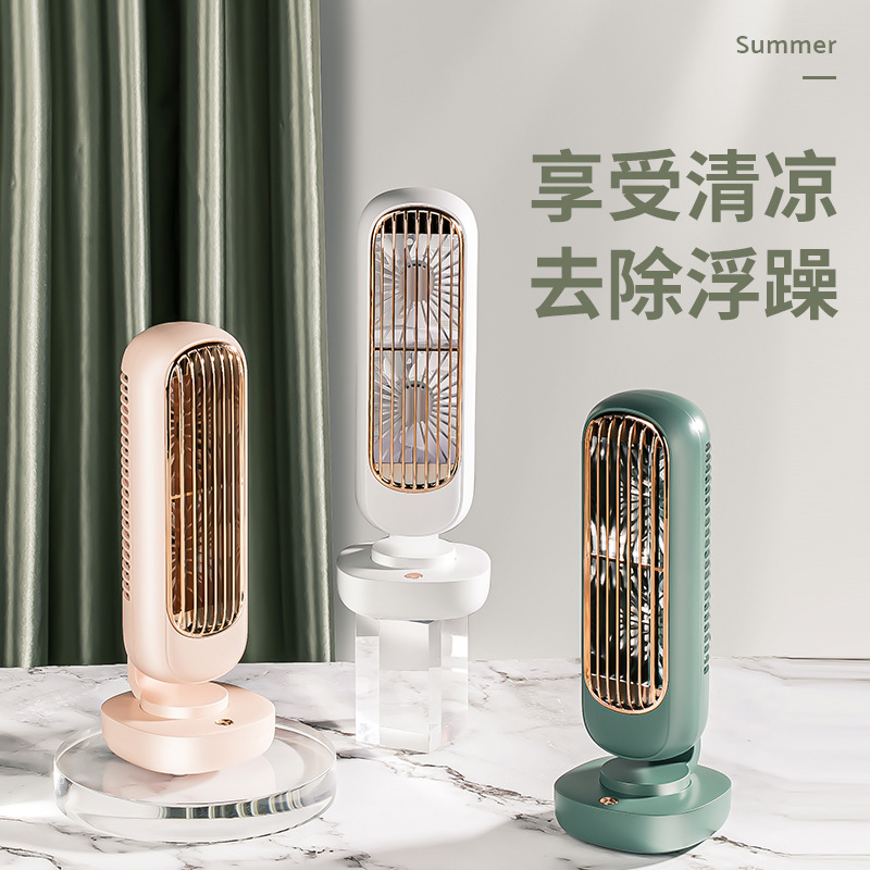 Mini tower fan usb charging portable desktop vertical mute small fan retro double leaf big wind cooling fan