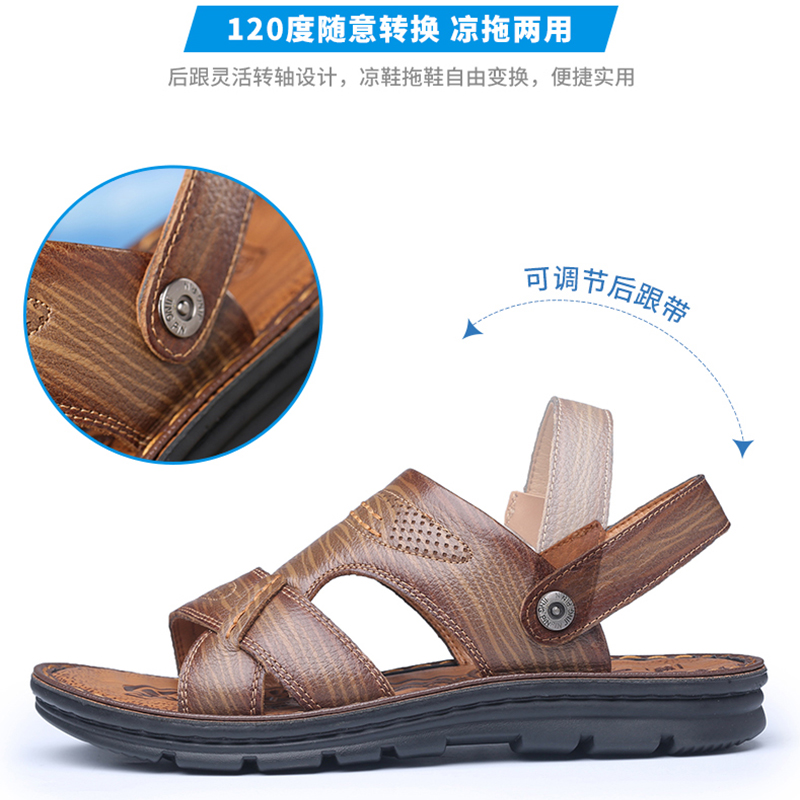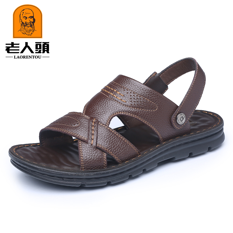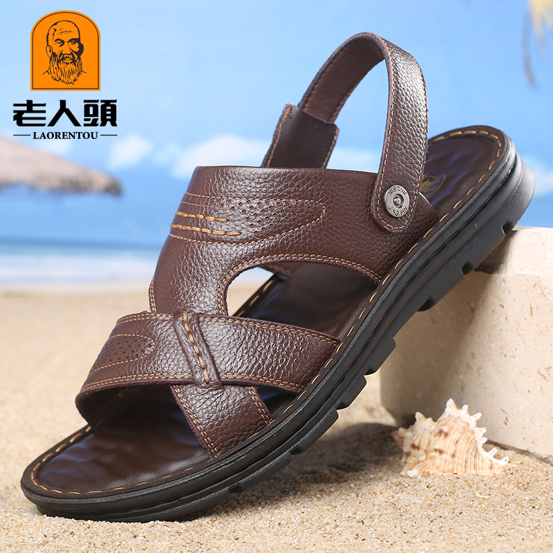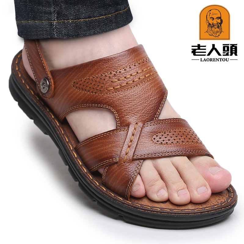 Old man's head sandals men's summer new leather breathable men's beach shoes casual driving middle-aged leather sandals man-Taobao