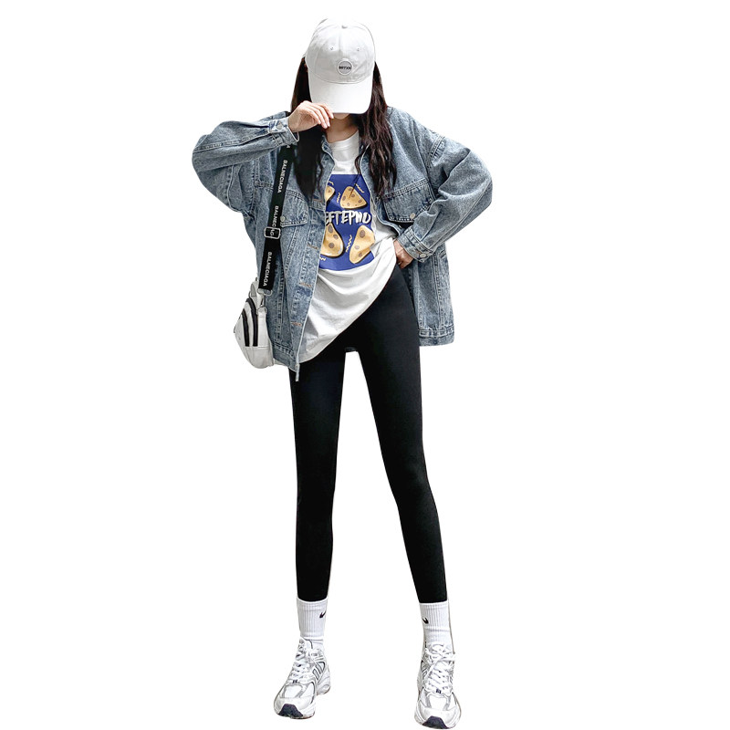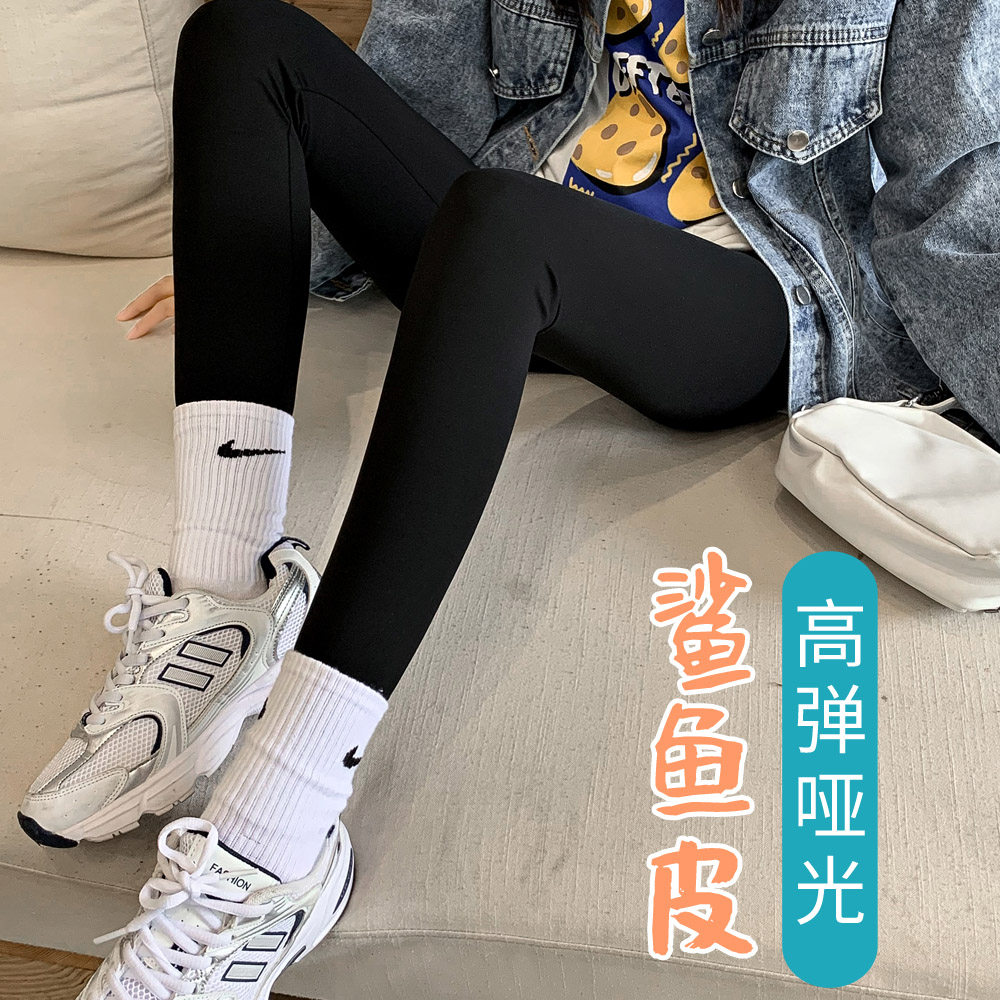 Small sharkskin women's outer wear inner pants autumn and winter thin high-waisted belly-raised hips tight Barbie yoga eight-point pants