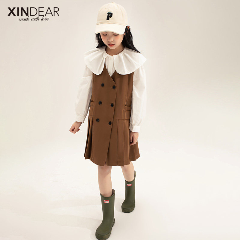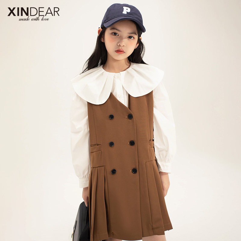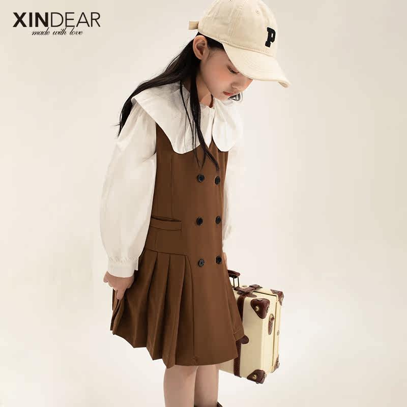 Girl's hanging band dress 100 plexor spring autumn 2022 new children's female harnesses child skirts the Korean version of the baby dress