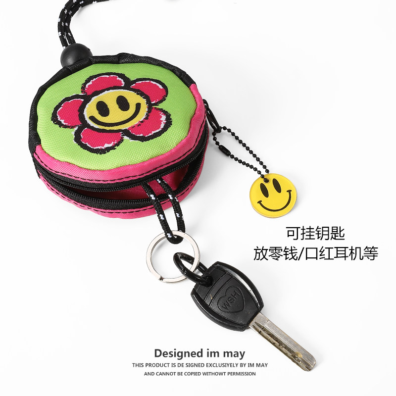 Original small crowddesign smiley face key containing bag mini-mouth red headphone bag hanging neck-style schoolbag pendant inrush