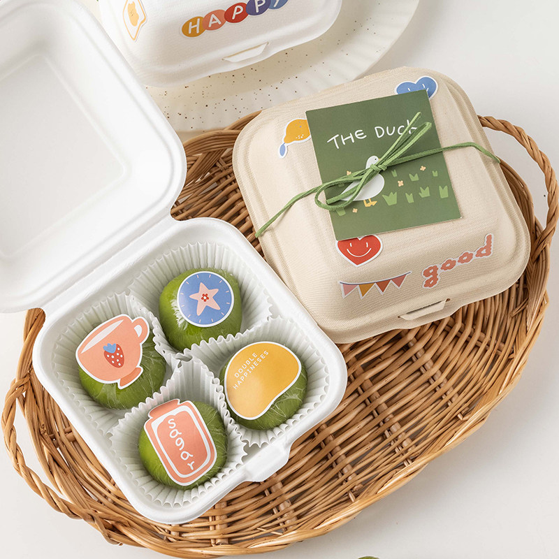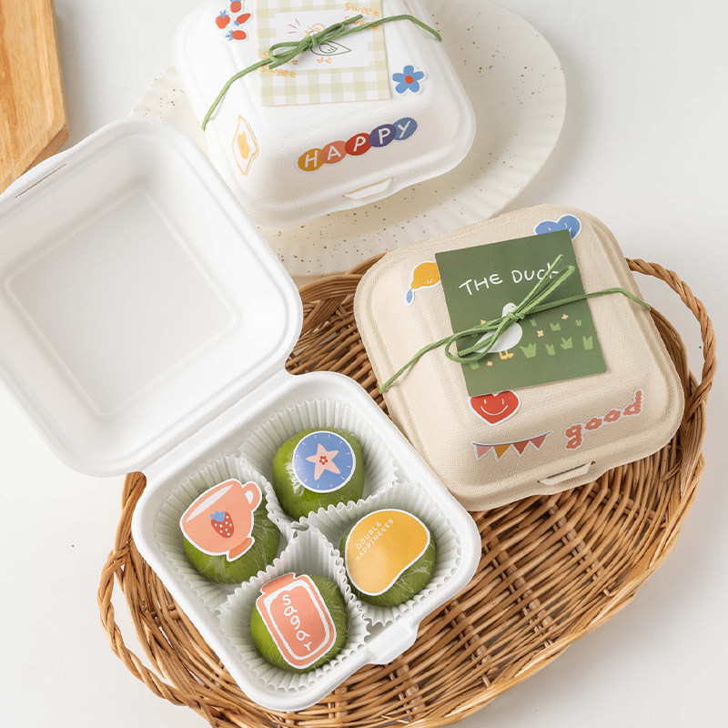 Green Regiment Packaging Box Tomb Sweeping Day 4 Degradable Boxed Boxed Box Snowy Lady Sweet packaging Sub-stickers