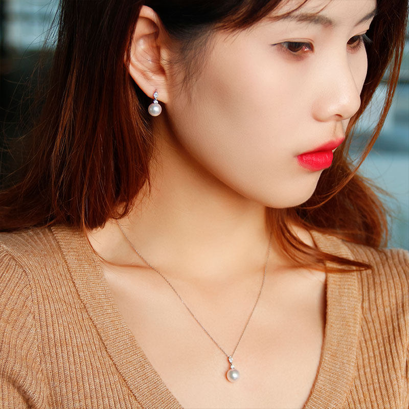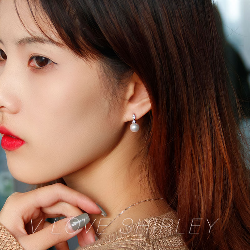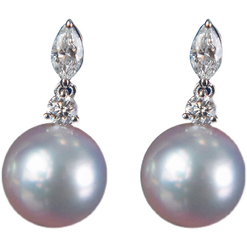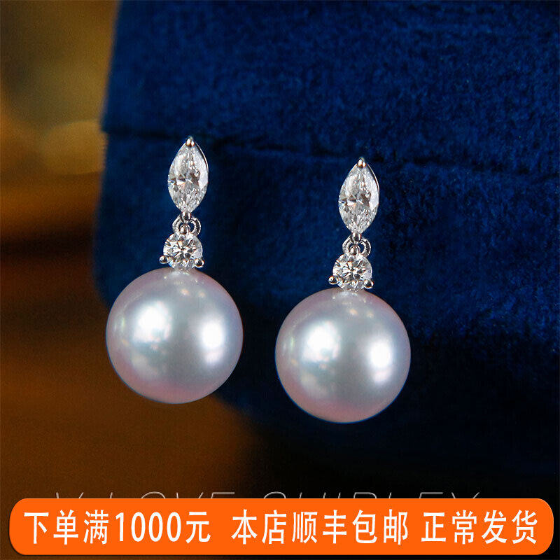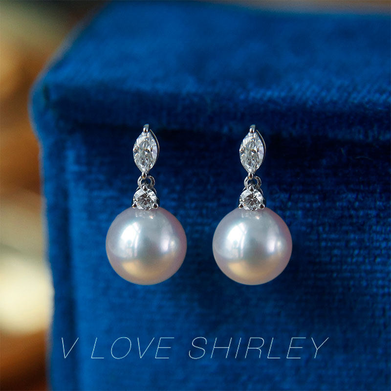 "Beauty Tears Series" Wei Love Show Liakoya Natural Seawater Pearl Ear Nail 18K Gold Diamond Elegant Earrings