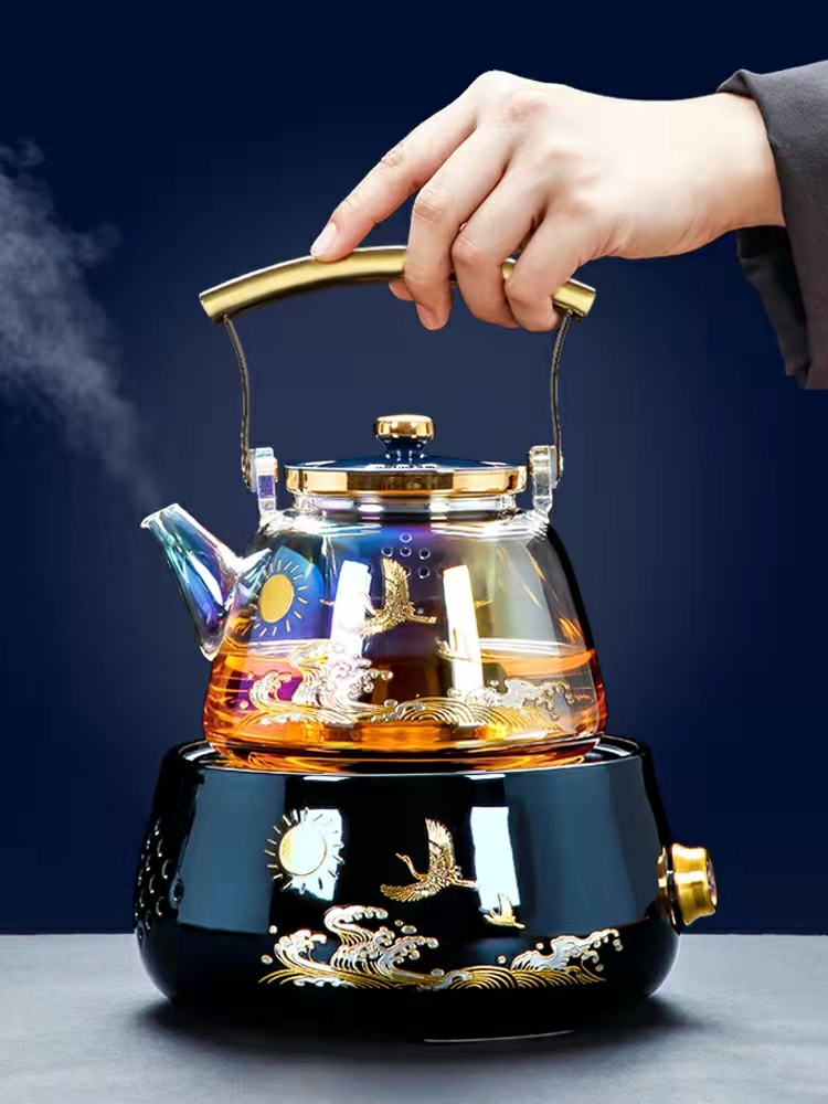 Hewan trade tea maker Ji blue crane lift beam glass steamed teapot household electric pottery stove boiling water health pot set