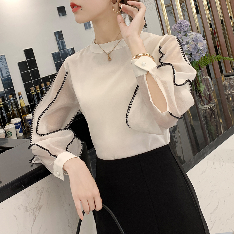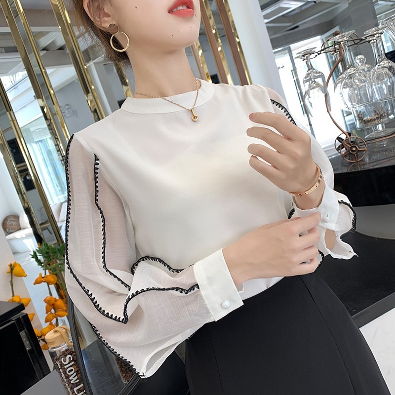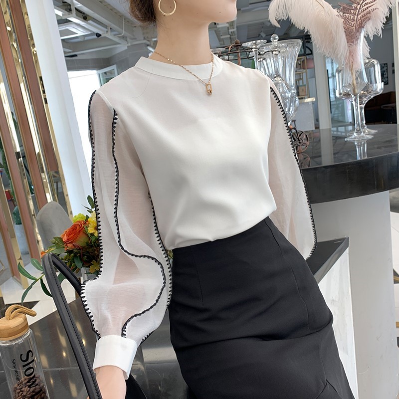 Upscale long sleeve snowspun blouses women 2022 spring autumn new Korean version fashion temperament blouse with lantern sleeve foreign shirt