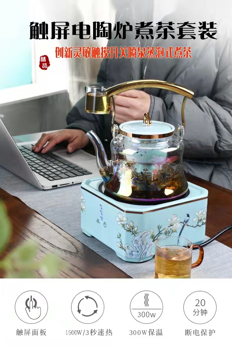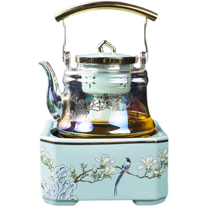 Hewan trade tea brewer happy eyebrow lift beam steamed teapot black crystal furnace glass kettle electric tea brewing furnace set