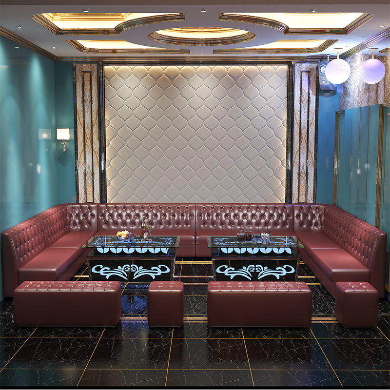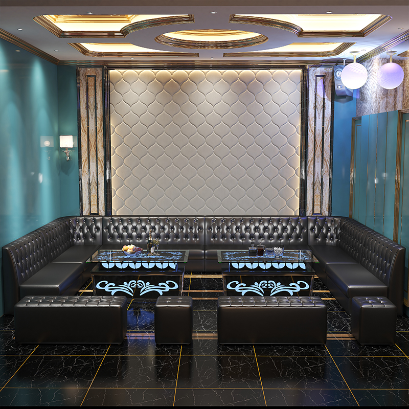Customized ktv sofa night market clear bar Di bar club box deck corner UL type glass coffee table combination family