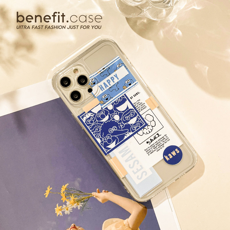 Benefit Personality Blue Collage Kaws Apply Apple 13promax Mobile Phone Protection Shell iphone12 Creative Mini Transparent Xsmax Tide Card Xr Violence