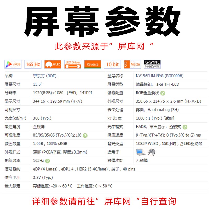 NV156FHM-NY8 NV156FHM-NY4 144HZ165 High Hertz 100% Color Gamut Display LCD Screen