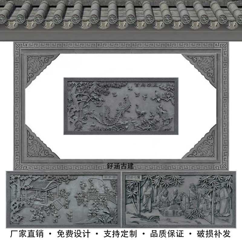 Brick sculpted green brick engraved with antique reliqued Baofu flower opening rich and expensive Chinese style courtyard wall decoration engraving