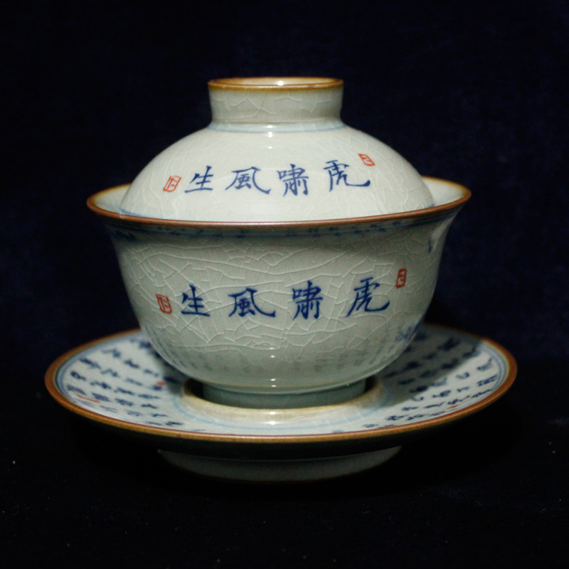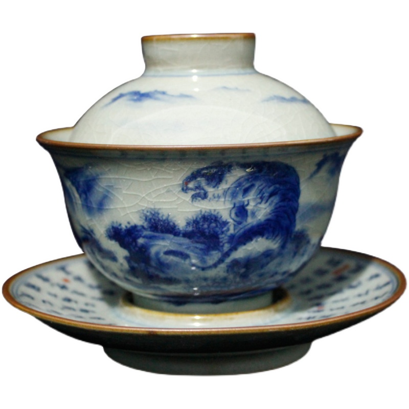 Jingdezhen factory goods ceramic ware hand painted green flower Fuhu to greet spring tiger with wind and tiger raw Venus to cover a bowl of tea cup