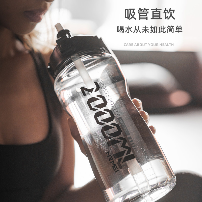 Sports Water Cup Super Capacity Male Summer Straw High Temperature Resistant Plastic 2000ml Kettle Tons Barrel Tons Military Training Water Mug-Taobao