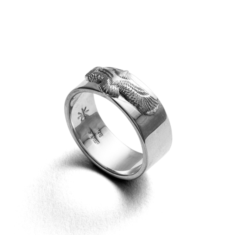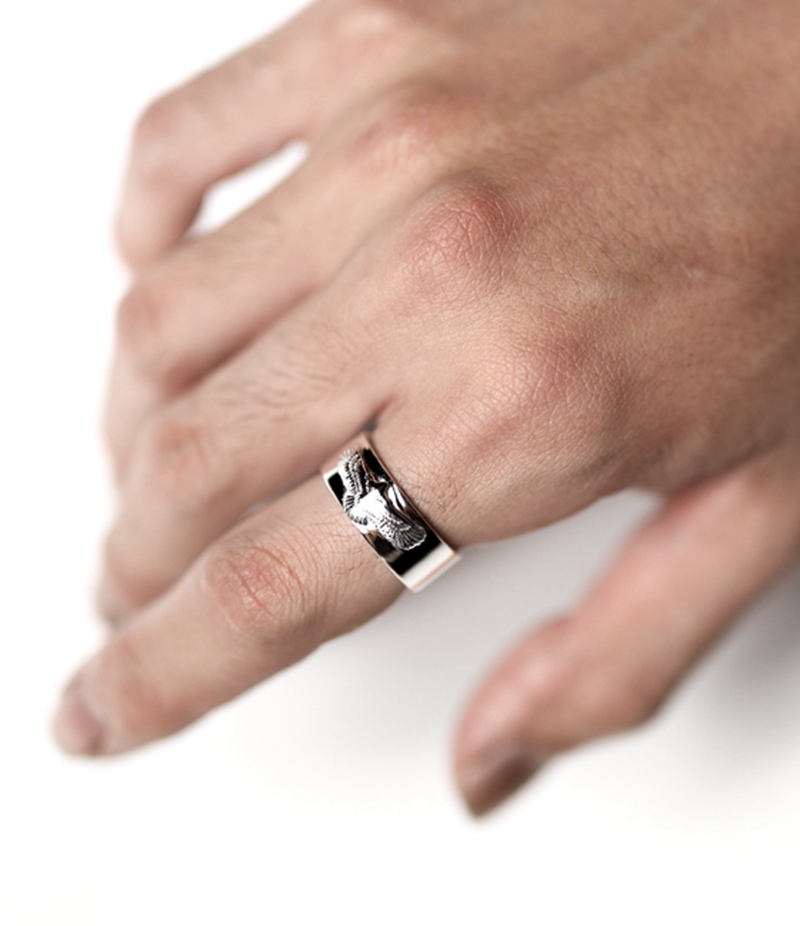 Japanese agent GOD SUNS February limit 925 silver 18 k gold head silver eagle flat ring