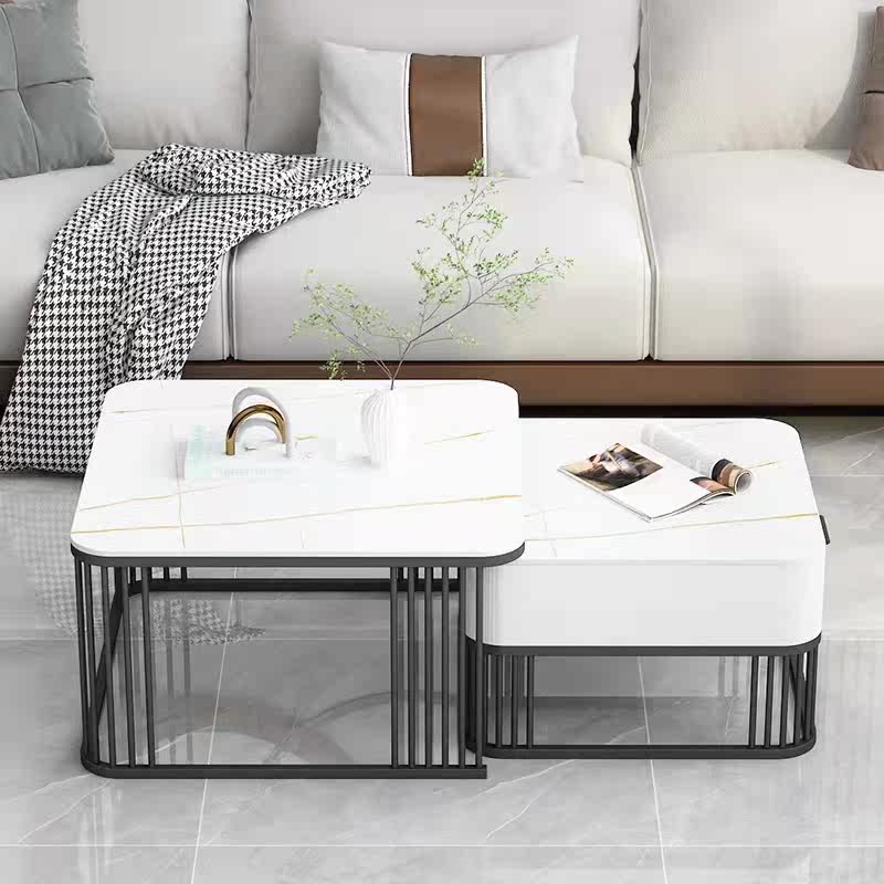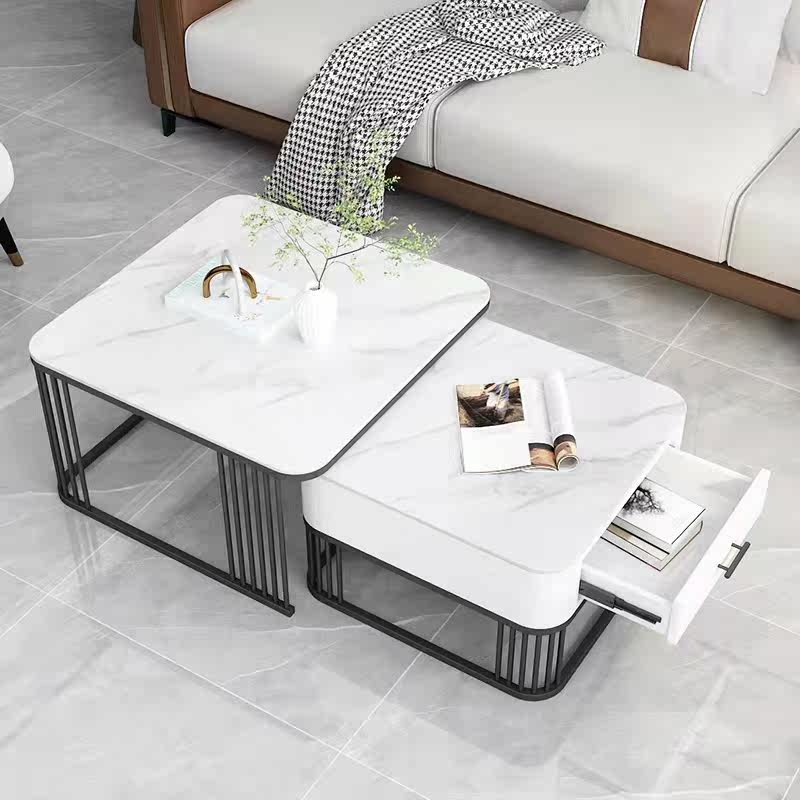 Italian style rock plate tea table light extravagant modern minimalist net red design feeling small family room square slate primary-secondary tea table