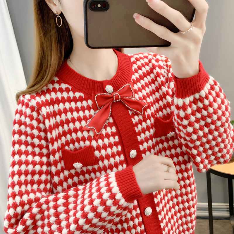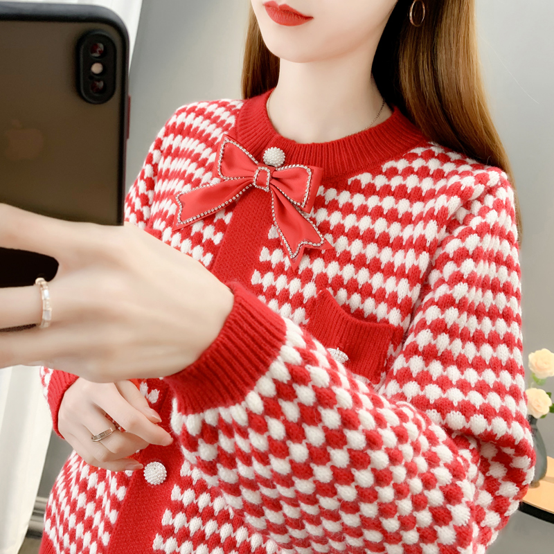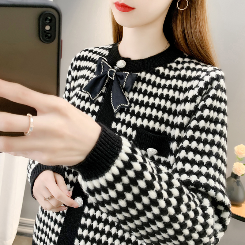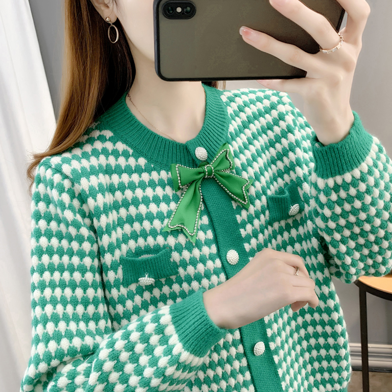 Small fragrant wind sweater woman 2022 Early spring new detachable butterfly knot knit cardiovert round neck long sleeve short jacket