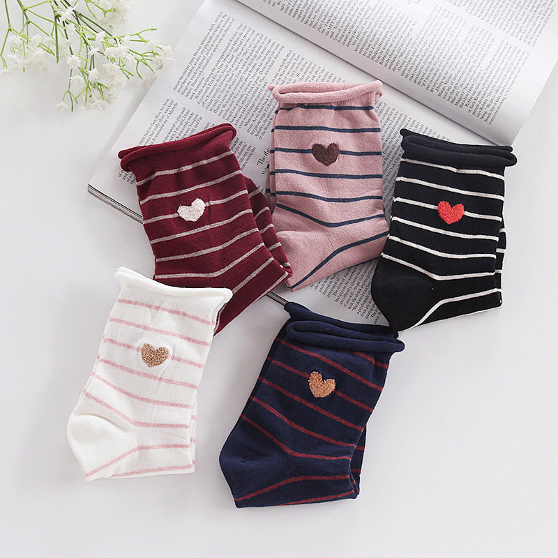 Korea East Gate Socks Striped Loving Curl Lady Socks Lady Cotton Socks Casual Long Barrel Socks