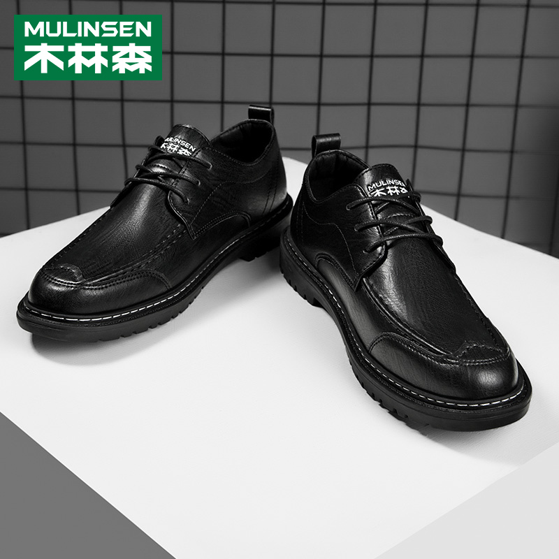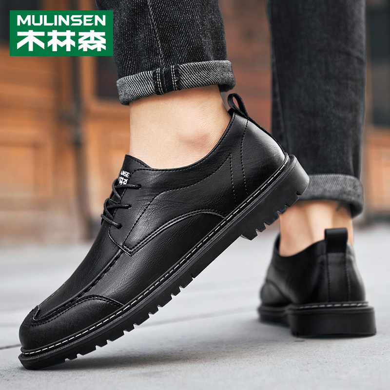 Mulinsen leather black casual leather shoes men's autumn new British style business formal dress cowhide soft bottom work