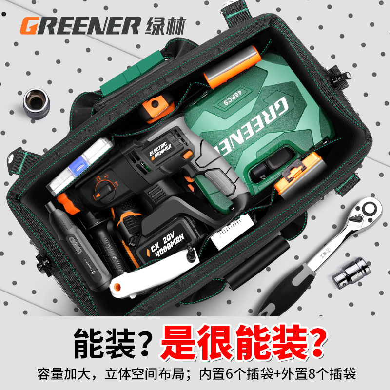(☟❤Upgrade night vision glistening strips design night trips are also safe❤☟) 14 inch fine work thickened oxford cloth kit (delivery shoulder strap screw box) 16 inch fine work thickened Oxford cloth tool