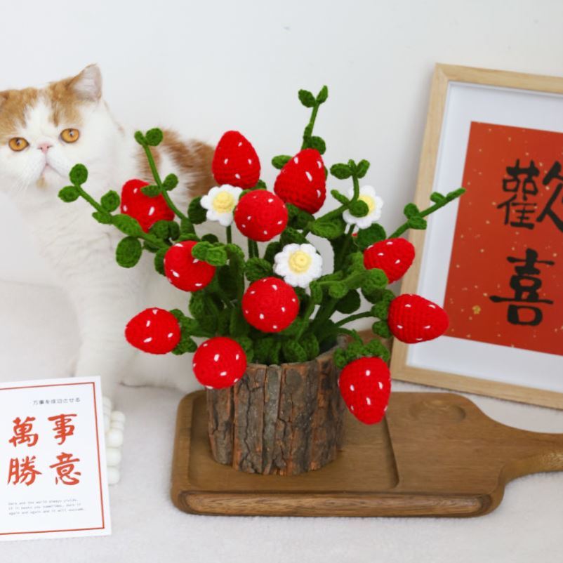 Handicraft Diy Yourself Make Mesh Red Creative Woven Wool Wire Emulation Potted Bouquet Knit Crochet Hook Needle Material Bag