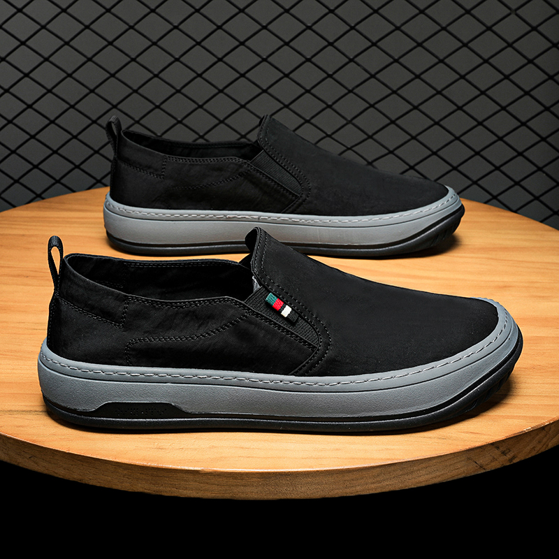 Old Beijing Cloth Shoes Male Laziness one foot pedal Deodorant Summer Ice Silk Driving Breathable Canvas Wave Shoes Men No Shoelaces