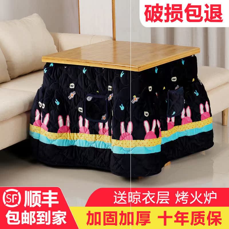 New winter fire grill fire table home heating table multi-function electric heating table solid wood dining table rectangular folding