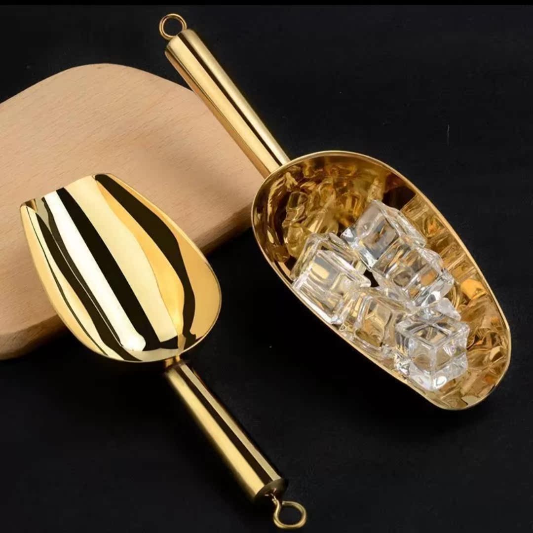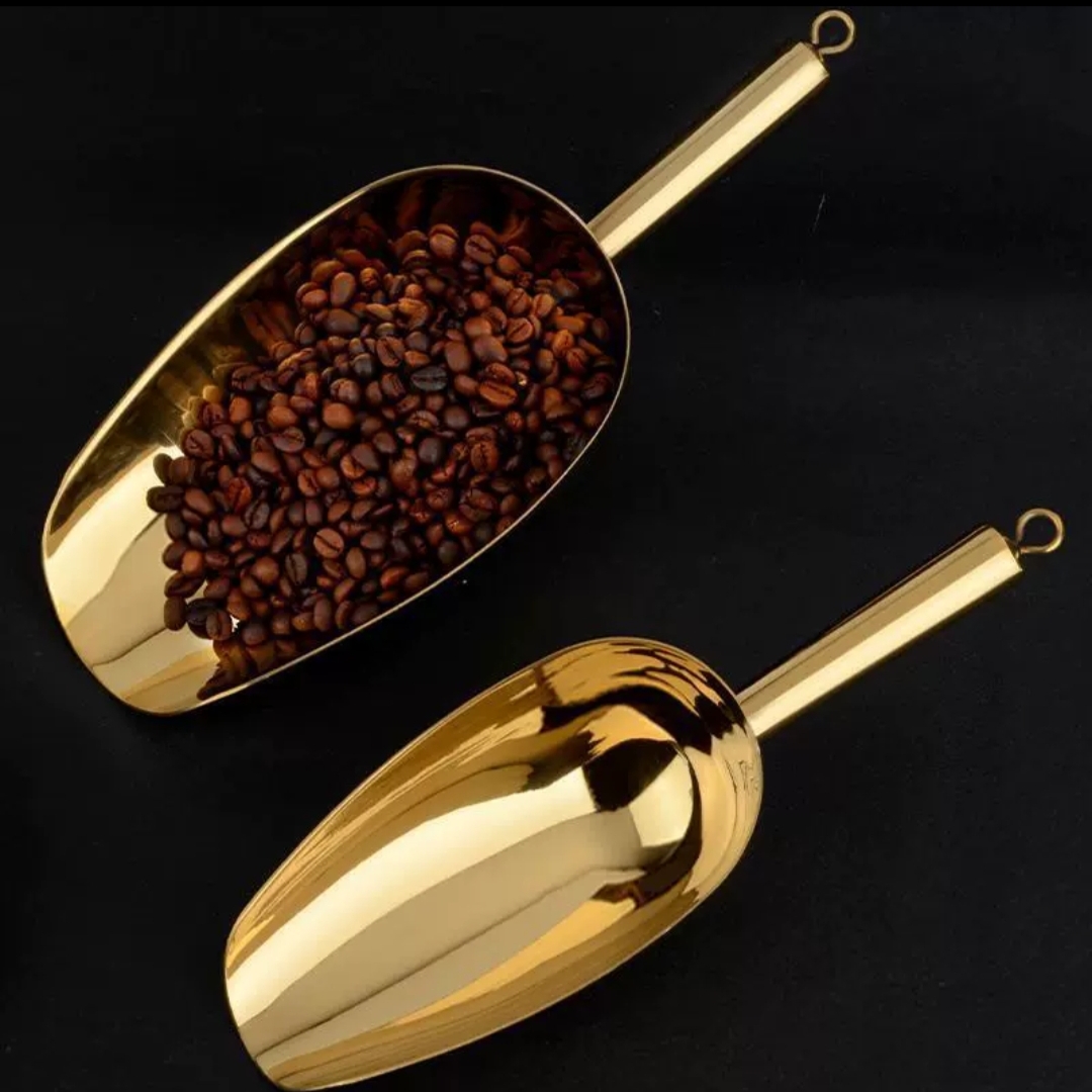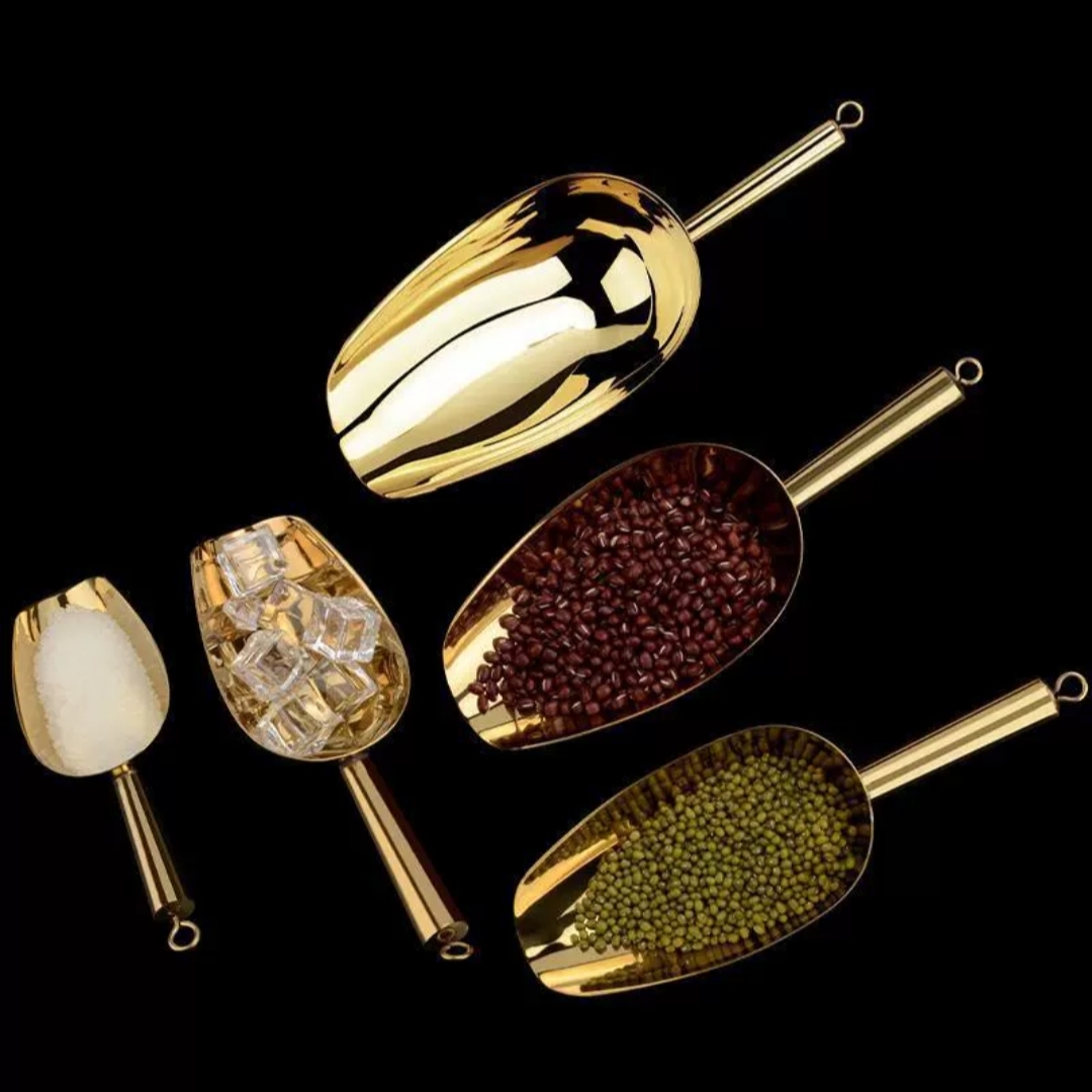 JJ Han Style Golden Stainless Steel Ice Shovel Bar Ice Shovel Supermarket Grain Shovels New Food Grade Flour Grocery Food Shovel